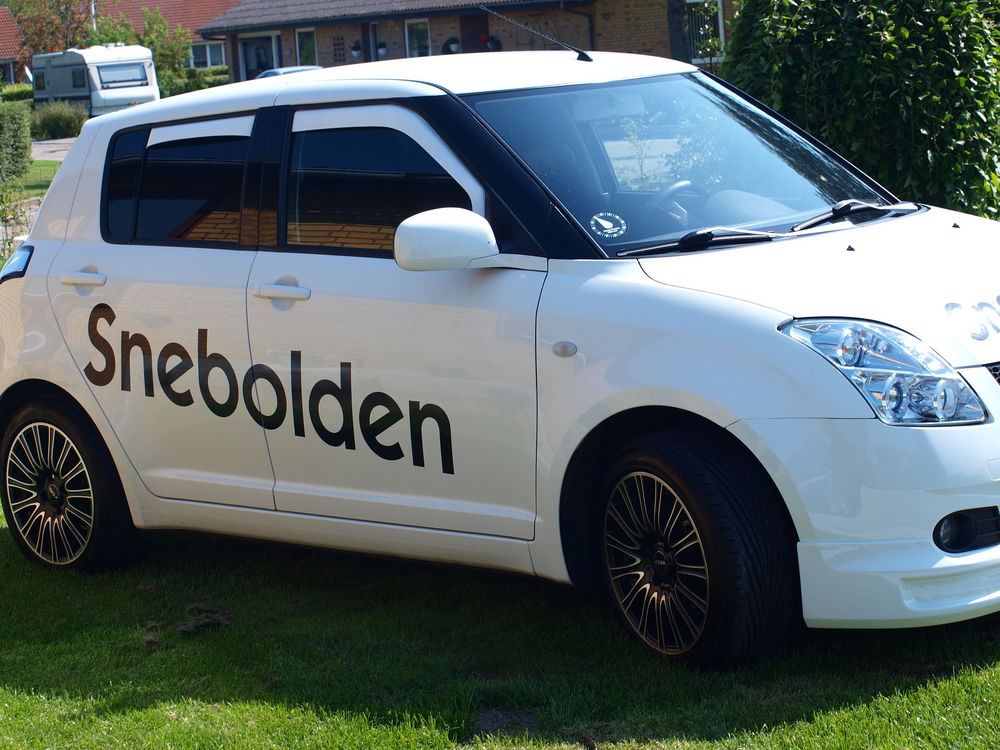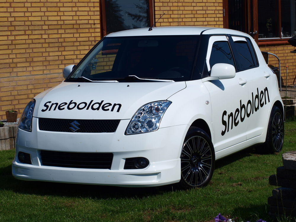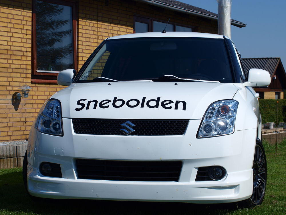 Fed ide med vindafvisere i bilens farve! Fælgene passer overraskende godt til en hvid bil.