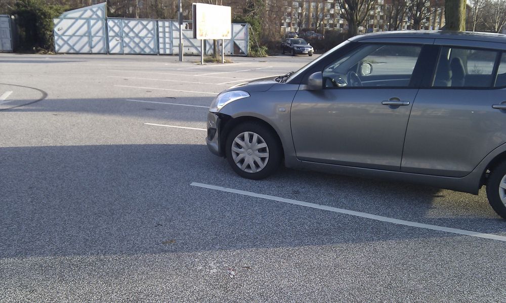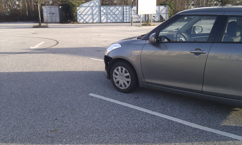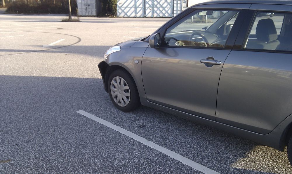 der var masser af plads på parkeringspladsen. kan heller ikke forstå hvordan man kan overse bilen. det er nu heller ikke fordi jeg holder særlig langt fremme i båsen.