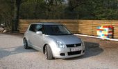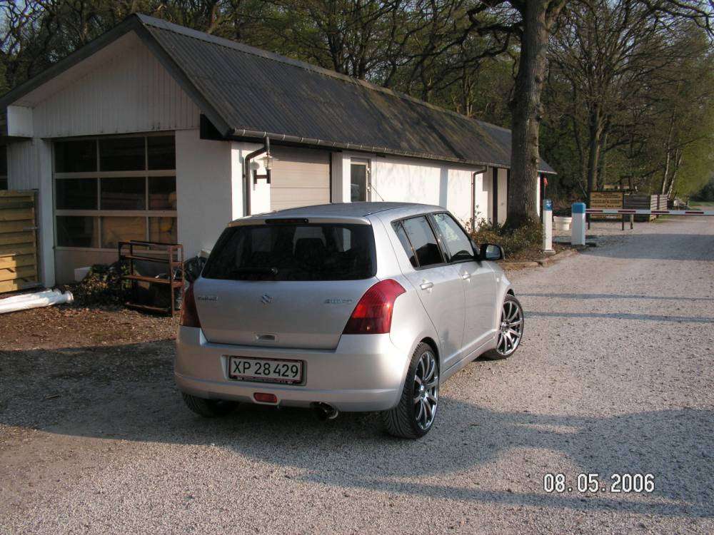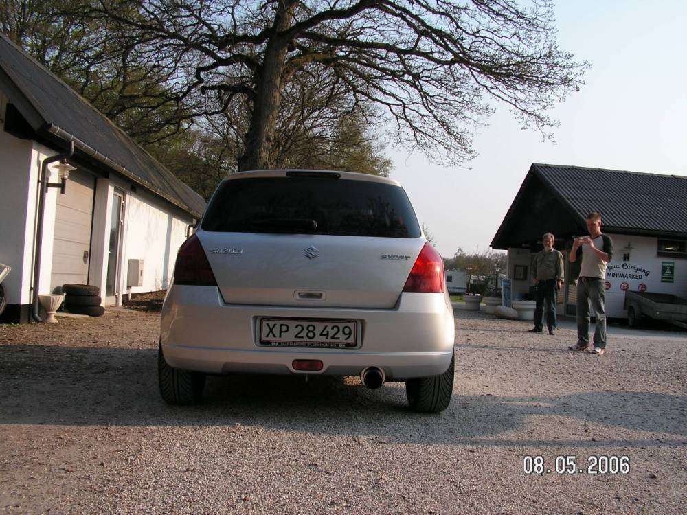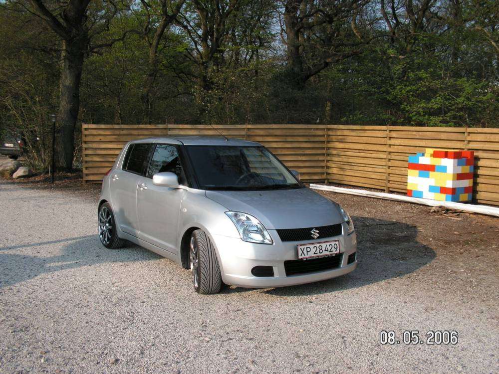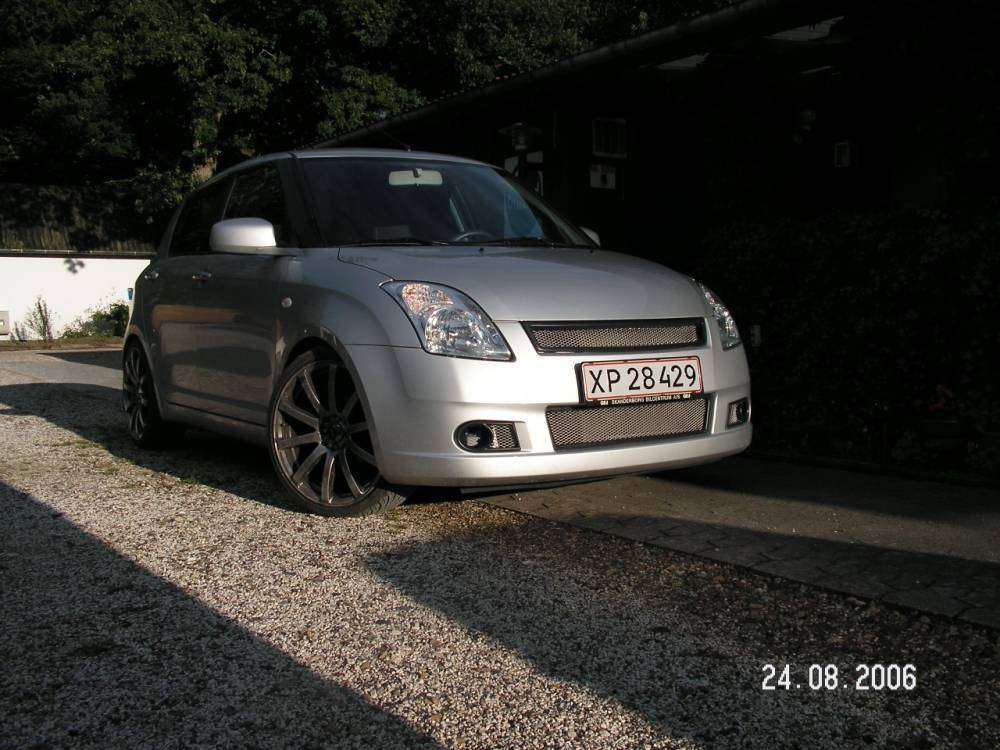 den er sænket 35mm. med Suzukis det originale. Fik tonet ruderne af nogle gutter ude fra Egå i Århus. Ved ikke lige hvad de hedder, men vil egentlig heller ikke anbefale dem. Det er fint nok, men der er enkelte fejl ved både min, min brors og min fars toning... og tak for det med lækker slæde